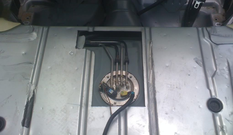 - Nedaudz izjaukt bagāžnieku un izzāģēt caurumu grīdā tieši virs sūkņa. Pirmajā reizē šis process aizņēma apmēram 6 stundas – izzāģēt, izņemt, ielikt un aiztaisīt ciet. Nākošajā reizē, tās bija 15-20 minūtes un jau varēja darboties ar sūkni.
